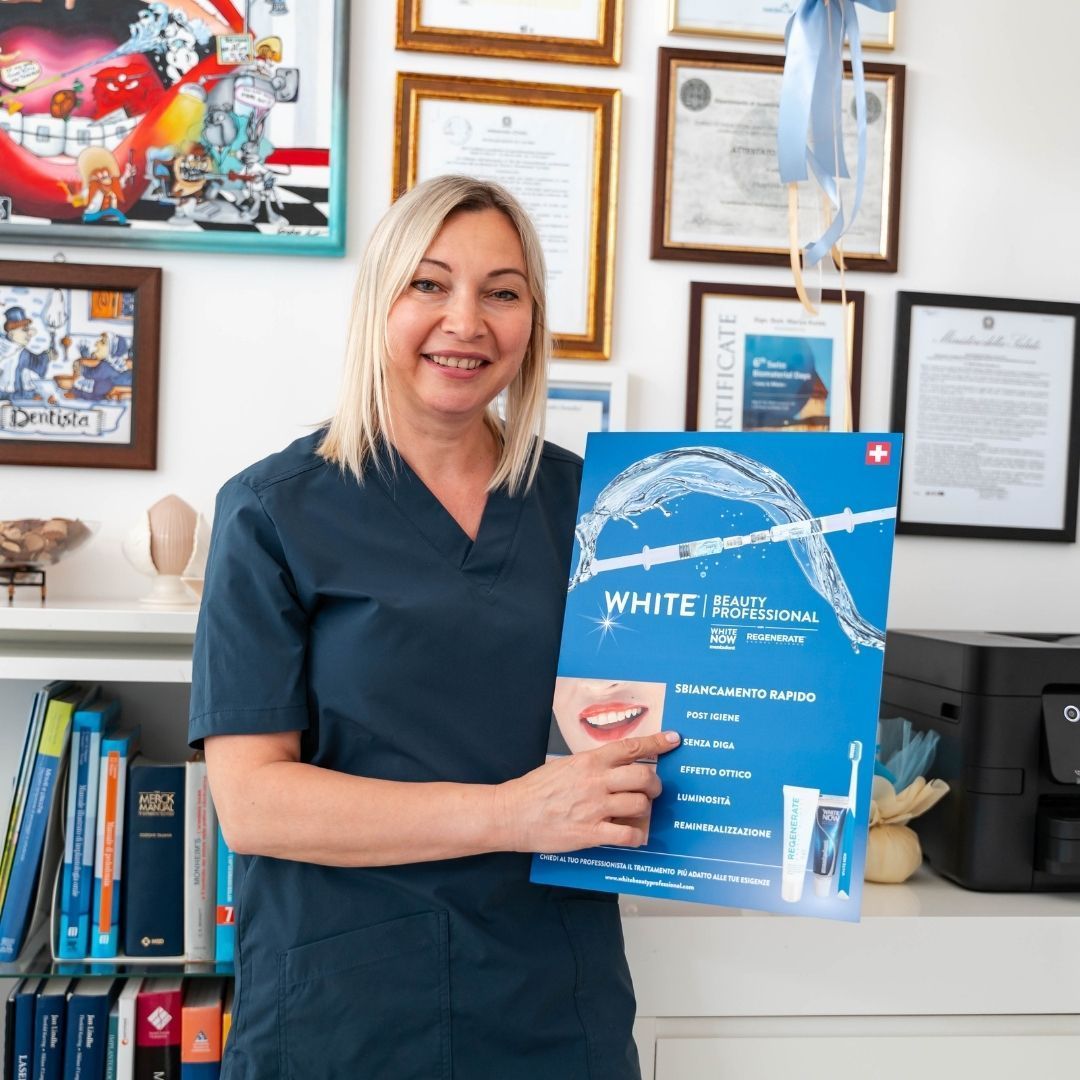 Un sorriso luminoso è il miglior biglietto da visita. Con lo sbiancamento dentale professionale è possibile schiarire il colore naturale dei denti, eliminando macchie e discromie causate da fumo, alimenti, bevande o invecchiamento. Utilizziamo prodotti certificati e sicuri, applicati sotto il controllo diretto della Dottoressa, per garantire risultati visibili fin dalla prima seduta e mantenibili nel tempo. Il trattamento è indolore, non danneggia lo smalto e dona nuova vitalità al sorriso